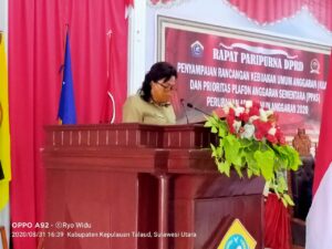 Rapat paripurna DPRD Kab. Kepl. Talaud dengan agenda Penyampaian Kebijakan Umum Perubahan APBD (KUPA) dan Rancangan Prioritas dan Plafon Anggaran Sementara Perubahan (PPAS-P) APBD Tahun Anggaran 2020 berlangsung
