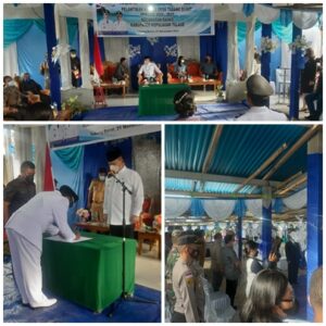 Ranis-Talaud, Pelantikan kepala Desa terpilih an.Jepris Petrus Sasoeng dan pemberhentian Plt Kepala Desa Tabang barat Kecamatan Rainis Kabupaten Kepulauan Talaud Arman Lumape yang dilakukan oleh Bupati Kepulauan Talaud. (21/11/2021)