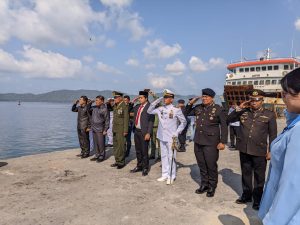 Melonguane-Talaud, Memperingati HUT TNI ke 78 tahun diKabupaten Kepulauan Talaud yang bertempat di Pelabuhan Melonguane, telah dilaksanakan Upacara Tabur Bunga dan menjadi Irup Kepala Danlanal Melonguane. Mengusung tema “TNI Patriot NKRI Pengawal Demokrasi untuk Indonesia Maju”. Upacara dihadiri oleh Forkopimda, dari Pemerintah Daerah Kabupaten Kepulauan Talaud dihadiri oleh Plh.Sekda Kabupaten Kepulauan Talaud Daud Malensang, S.Sos selaku Assisten Tata Pemerintah dan Kesra, Kepala OPD, para pejabat TNI dan Polri serta anak SMA Negeri 1 Talaud di Melonguane. (0410/2023)