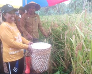 Moronge-Talaud, Asisten Pemerintahan dan Kesra Daud Malensang, S.Sos, M.Si mewakili Bupati Kepulauan Talaud Dr. dr. Elly Engelbert Lasut, ME melaksanakan kegiatan Memanen padi ladang bersama Kelompok Tani Lembaga Adat Desa Moronge, di Lingkaren Kecamatan Moronge, (09/10/23).