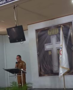 Melonguane -Talaud, Asisten Administrasi Umum Sekda Gustaf Atang, STP., MM wakili Bupati Kepulauan Talaud Dr. dr. Elly Engelbert Lasut, ME menghadiri Acara Pelantikan Pengurus Wilayah Gereja Bethel Indonesia (GBI) Kabupaten Kepulauan Talaud, Selasa (24/10/23) di GBI Lembah Pujian Melonguane Barat.