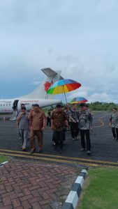 Wakil Bupati Kabupaten Kepulauan Talaud Moktar Arunde Parapaga bersama Jajaran Forkopimda dan Para Pejabat Tinggi Pratama di Lingkup Pemerintah Kabupaten Kepulauan Talaud Menerima kunjungan kerja Ketua Pengadilan Tinggi Sulawesi Utara, Asli Ginting, S.H.,M.H. bersama rombongan di Bandara Melonguane, (02/02/24).