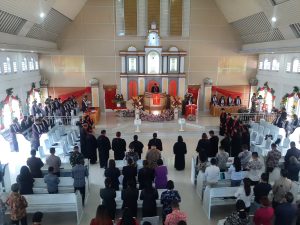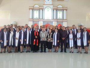 “Mari kita terus menjaga semangat kebersamaan dan kekompakan dan jadikanlah gedung Gereja ini sebagai pusat pelayanan bukan saja bagi jemaat tetapi juga bagi mereka yang membutuhkan. Teruslah menjadi terang ditengah masyarakat, membantu mereka yang lemah memberi harapan kepada yang kehilangan arah” ajaknya