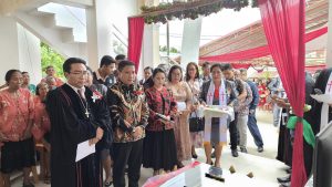 Rangkaian kegiatan diawali dengan Ibadah pentahbisan dipimpin oleh Ketua Sinode Germita Pdt, Dr. Arnol Apolos Abas dan penandatanganan prasasti oleh Pejabat Bupati dan Ketua Sinode.