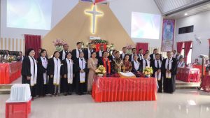 Pj. Bupati Kabupaten Kepulauan Talaud Dr.Fransiscus Engelbert Manumpil, S.Pi,M.Env, Mgmt bersama dengan Para Pejabat Tinggi Pratama hadiri Acara Pentahbisan gedung Ibadah, pastori dan aula Jemaat GERMITA Lembon Samala Taturan, Minggu (24/11/24).