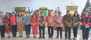 Penjabat (Pj) Bupati Kepulauan Talaud Dr.Fransiscus Engelbert Manumpil S.Pi,M.Env, Mgmt, bersama Ketua Tim Penggerak PKK Kabupaten Kepulauan Talaud Ibu Pdt. Deysie Khristine Lewan, M.Th beserta Asisten Sekda dan Pejabat Tinggi Pratama di lingkup Pemerintah Kabupaten Kepulauan Talaud menghadiri acara Safari Natal Tahun 2024 di Kecamatan Kabaruan, Minggu (22/12/24).