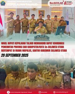Wakil Bupati Kabupaten Kepulauan Talaud, Anisya Gretsya Bambungan, SE, menghadiri Rapat Koordinasi (Rakor) Pemerintahan Provinsi dan Kabupaten/Kota se-Sulawesi Utara yang berlangsung di Aula Mapalus, Kantor Gubernur Sulawesi Utara, pada Senin (29/9/2025).