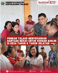 Pemerintah Kabupaten Kepulauan Talaud merespon dengan cepat kebutuhan warga pasca bencana banjir yang terjadi di Desa Tarun dan Tarun Selatan dengan memberikan bantuan pangan kepada warga terdampak yang diserahkan secara langsung oleh Bupati Kepulauan Talaud Welly Titah bersama Ketua Tim Penggerak PKK, Kepala Dinas Ketahanan Pangan dan Pertanian, Kepala Dinas Komunikasi, Informatika dan Statiatik, Plt. Kepala BPBD, Plt. Kadis PUTR dan Staf Khusus Bupati pada Kamis (8/1/2026).