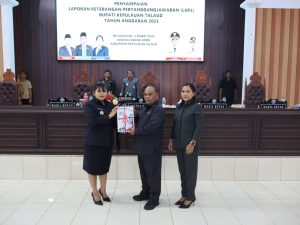 Pemerintah Kabupaten Kepulauan Talaud secara resmi menyampaikan Laporan Keterangan Pertanggungjawaban (LKPJ) Kepala Daerah Tahun Anggaran 2025 dalam Rapat Paripurna yang digelar di Gedung Sidang DPRD Kabupaten Kepulauan Talaud, Senin (2/3/2026).Rapat paripurna ini dipimpin langsung oleh Ketua DPRD, Drs. Engelbertus Tatibi, M.E., didampingi Wakil Ketua I Jakop Mangole, S.E., M.A., dan Wakil Ketua II Janastasya Ch. Parapaga, S.E., S.Kom. Hadir mewakili Bupati, Wakil Bupati Kepulauan Talaud Anisya Gretsya Bambungan, S.E., yang membacakan pidato pengantar Bupati Welly Titah.